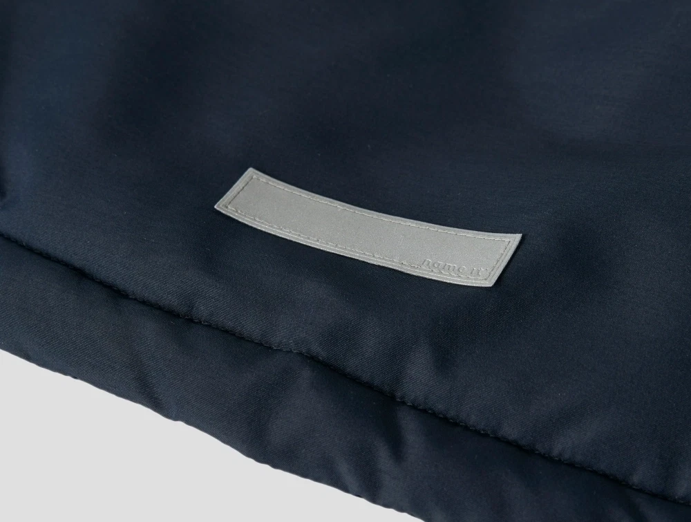 Name It jakke dark sapphire ensfarvet med refleksdetaljerDetalje af aftagelig hætte på mørkeblå jakke fra Name ItÆrmedetalje og ribkant på Name It jakke dark sapphireRefleksdetalje på mørkeblå Name It jakkeName It jakke dark sapphire ensfarvet vist bagfra