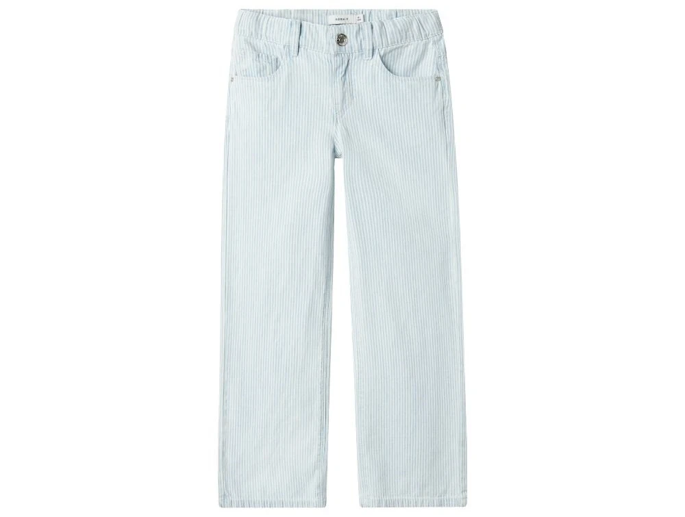 Klassiske jeans fra Name It i en lys blå denim med fine hvide striber. Bukserne er fremstillet af 100% bomuld, hvilket giver en blød og behagelig fornemmelse.