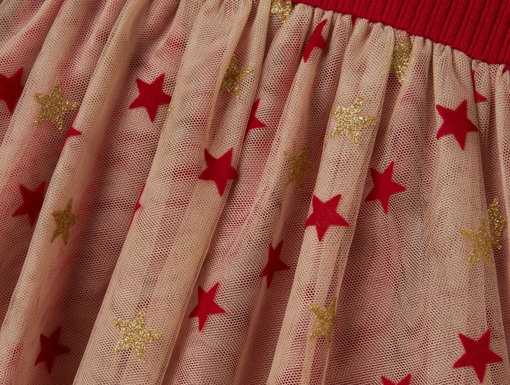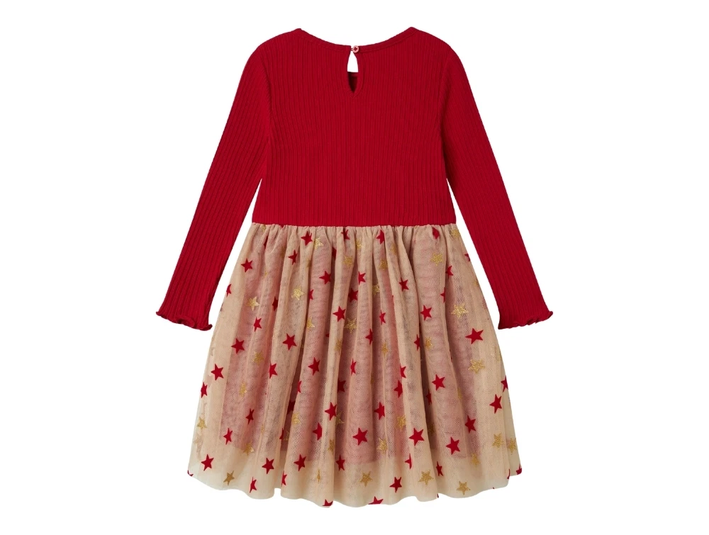 Kjole i farven jester red med tylskørt med stjerner fra Name It.
