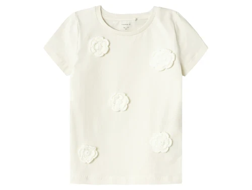 Kortærmet top i farven jet stream med påsatte blomster fra Name It.