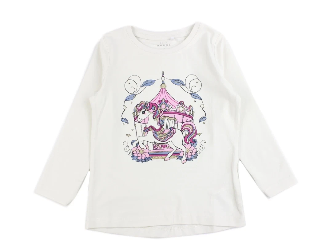 Langærmet top i farven jet stream med hesteprint og glimmer fra Name It.