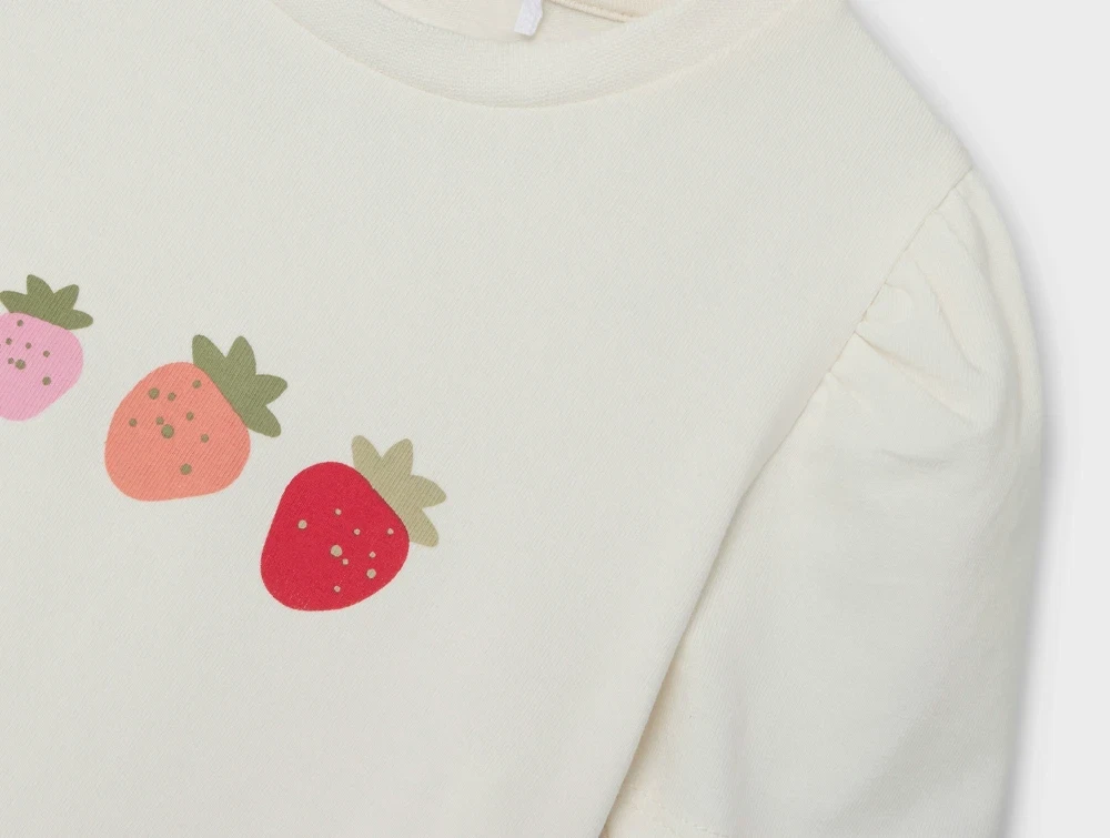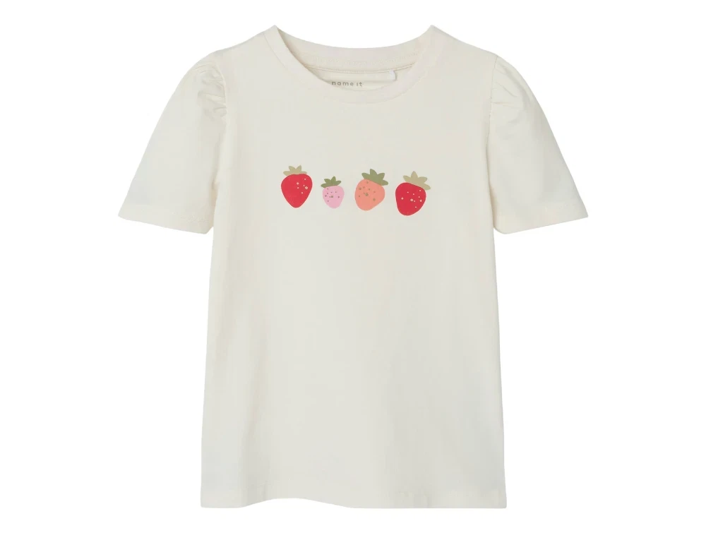 Kortærmet top/t-shirt i farven jet stream med jordbærprint fra Name It.