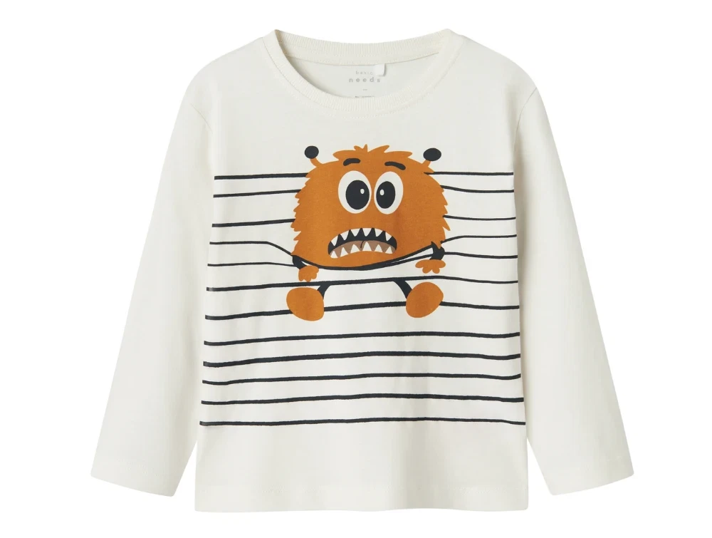 Langærmet top i farven jet stream med monster-print fra Name It.