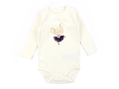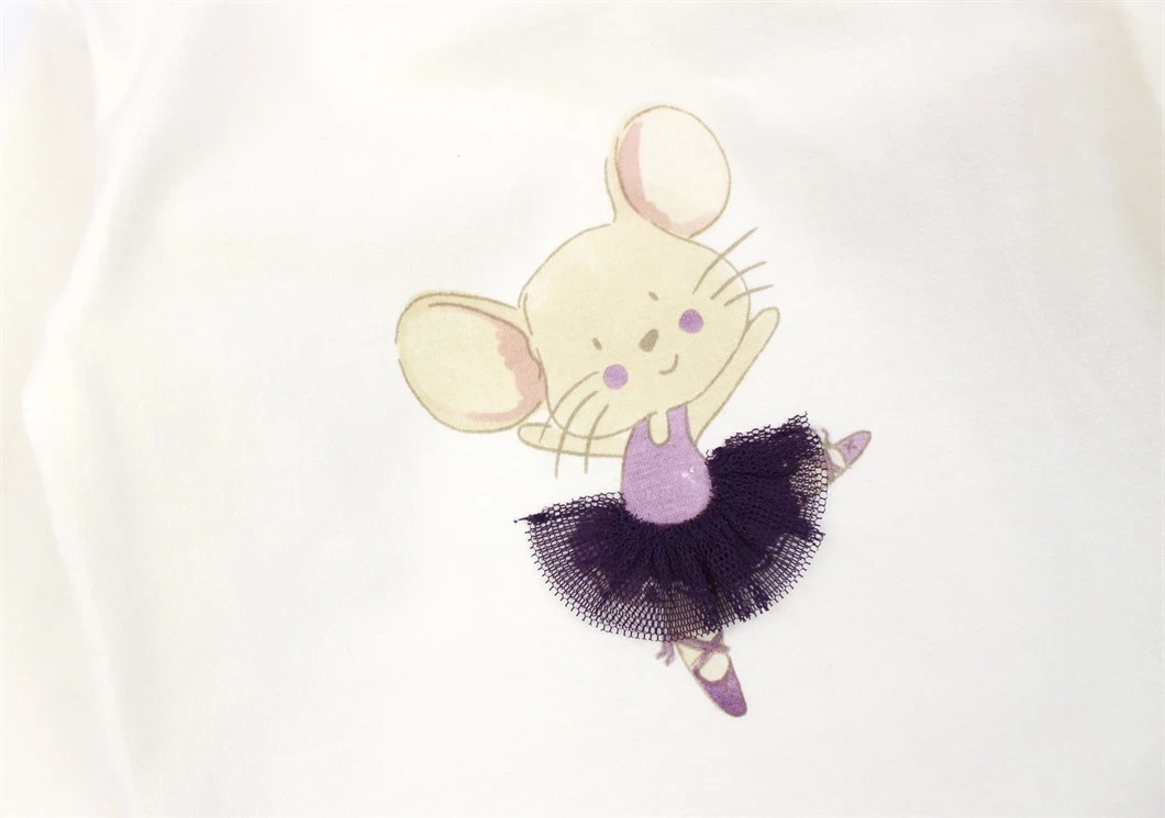 Bodyen et en sød applikation/print af en mus, der er balletdanser.