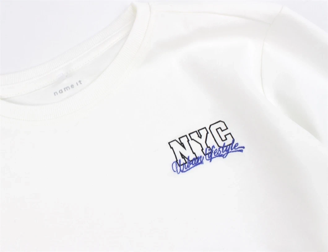 Let bluse i farven jet stream med NYC-broderi fra Name It.