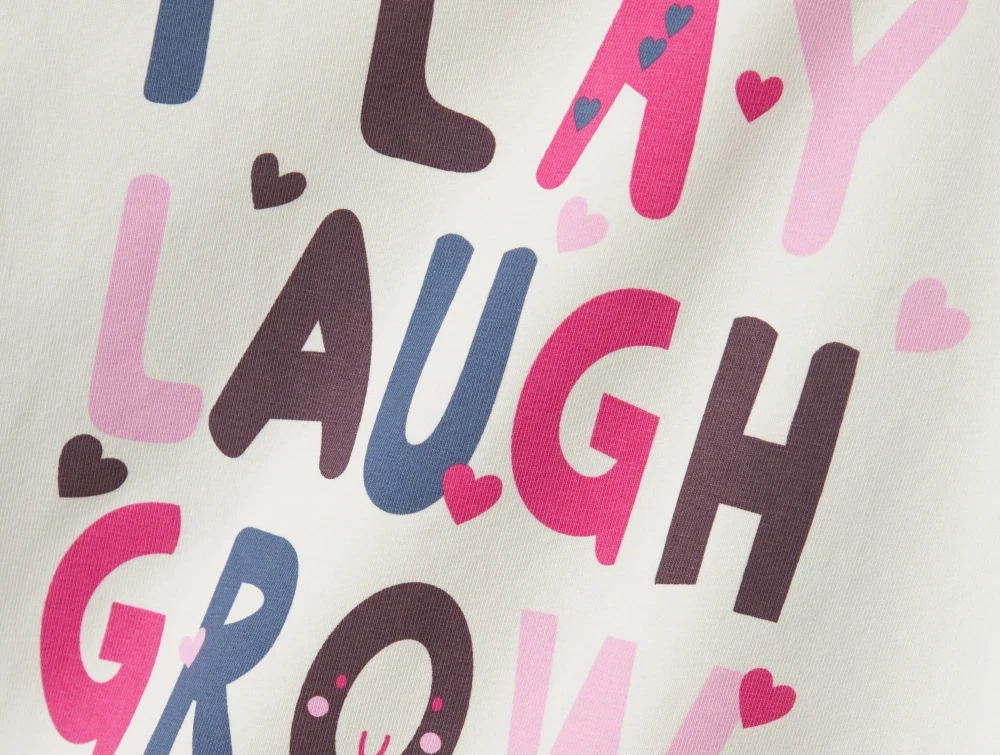 Langærmet top i farven jet stream med 'play laugh grow' print fra Name It.