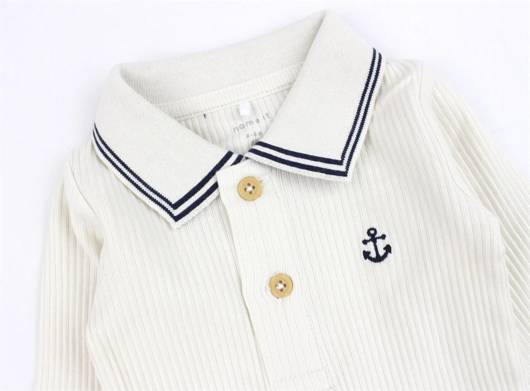 Polobody i farven jet stream med to knapper og polokrave fra Name It.
