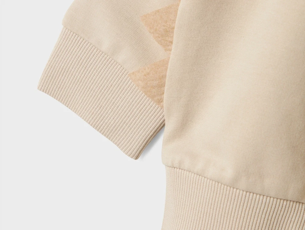 Sweatshirt i beige nuance fra Name It med stort T. rex print og 3D-detaljer i siden. Motivet er inspireret af Jurassic World-universet og trykt med bløde flock- og gummidetaljer, der giver et flot udtryk.