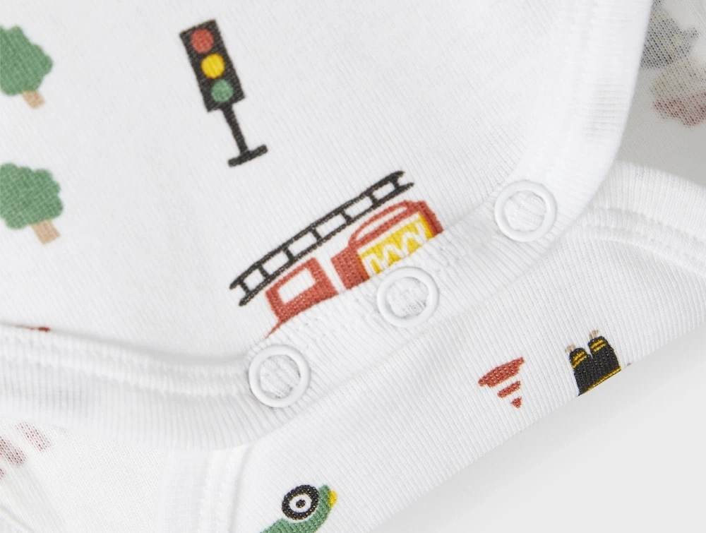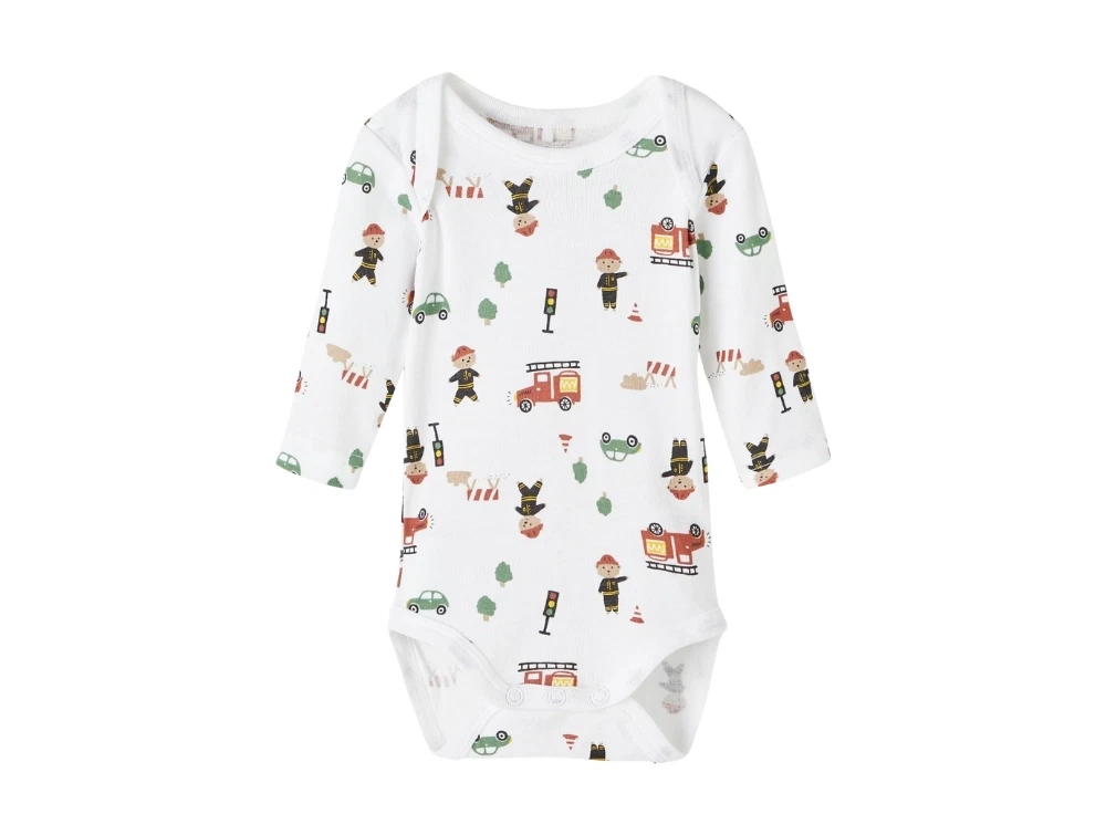Pakken indeholde en body i ensfarvet kashmirgrøn, en hvid body med print af brandmand og en hvid body mere med all over print med brandmand-tema.