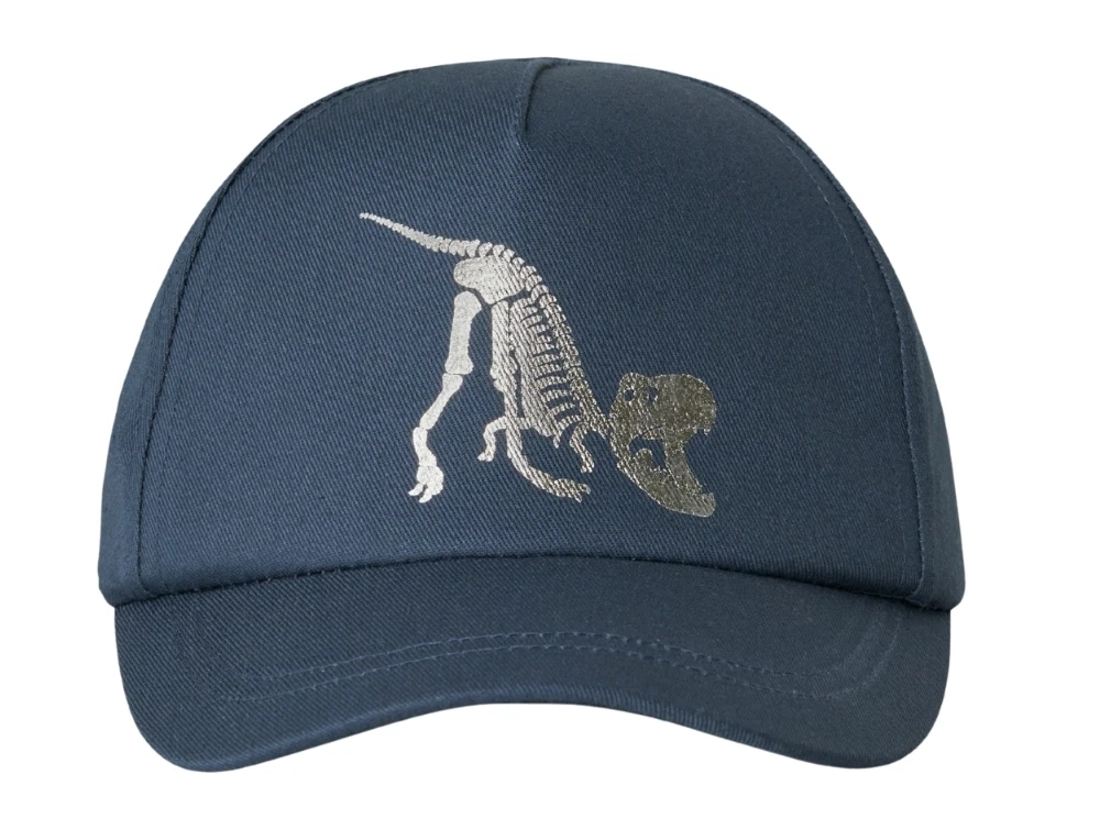 Name It kasket blå med dinosaur skeletprint foranName It børnekasket vintage indigo med dinosaur motivName It kasket med dinosaur skeletprint til børnName It kasket vintage indigo med dinosaur foil print