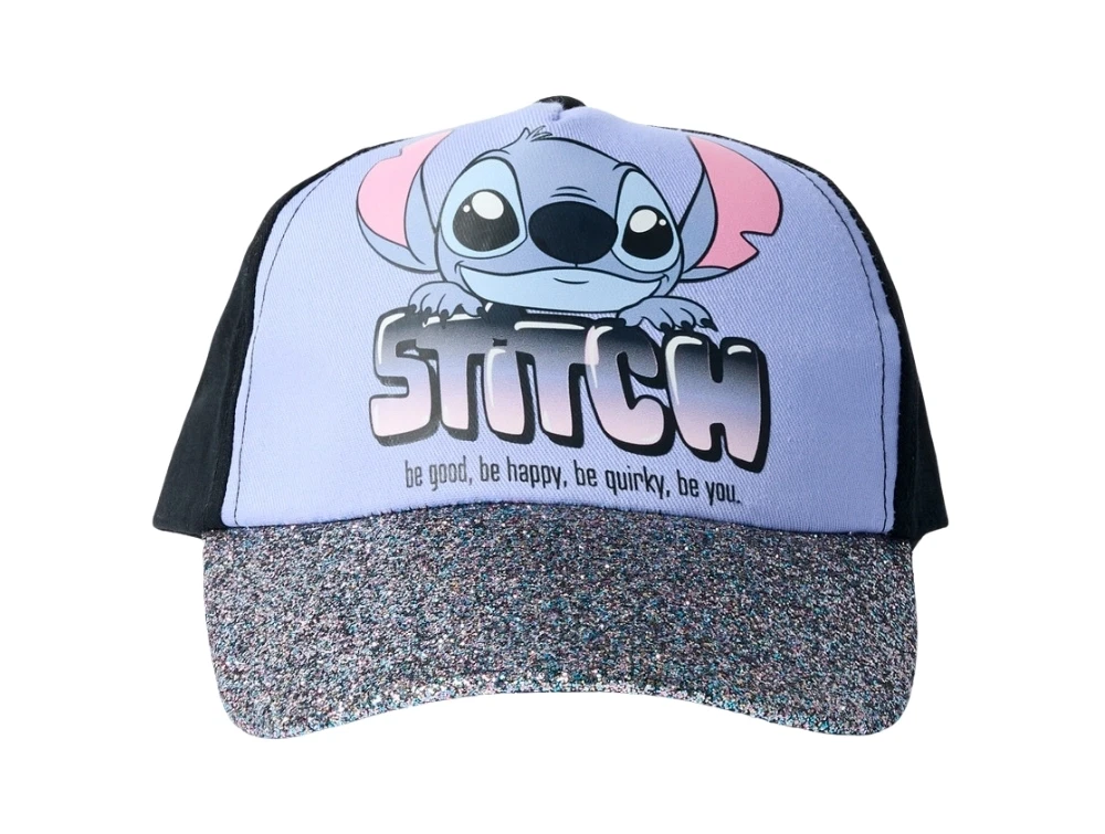 Fronten har print med figuren Stitch og teksten “STITCH”, mens skyggen har glitrende effekt.