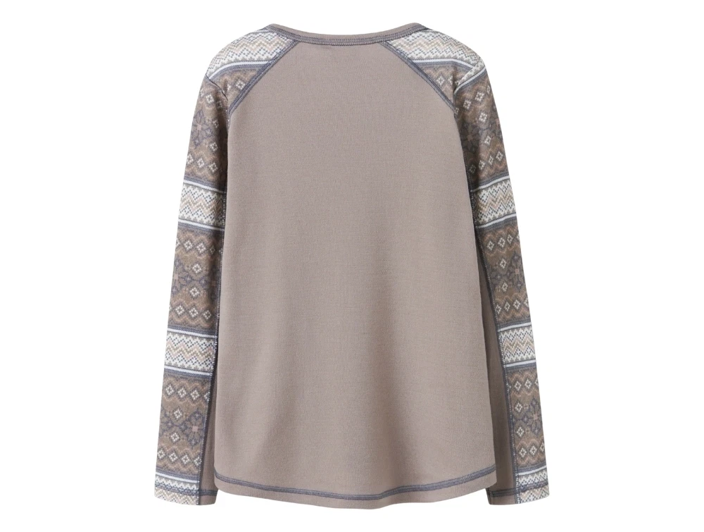 Langærmet uldbluse fra Name It i en grå-brun nuance (satellite) med sne-inspireret mønster.