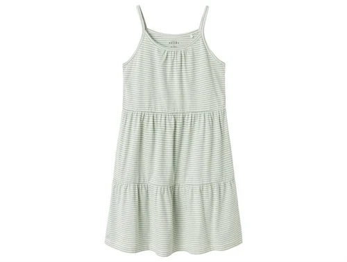 Name It kjole i lysegrønne striber med stropper og flæsedetaljer