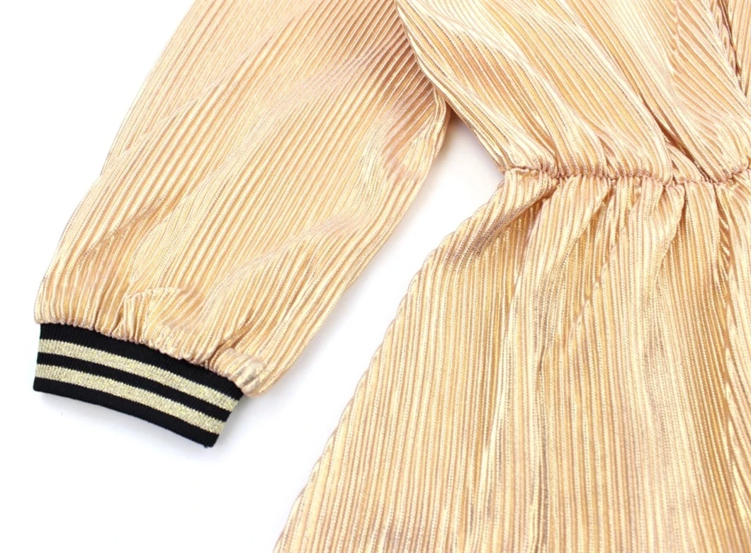 Kjole med metallic-/guldfarvet skær i plisse fra Name It.