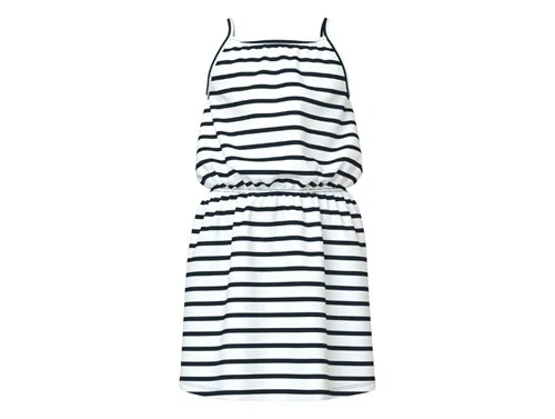 Name It kjole i hvid med mørkeblå striber og elastik i taljen
