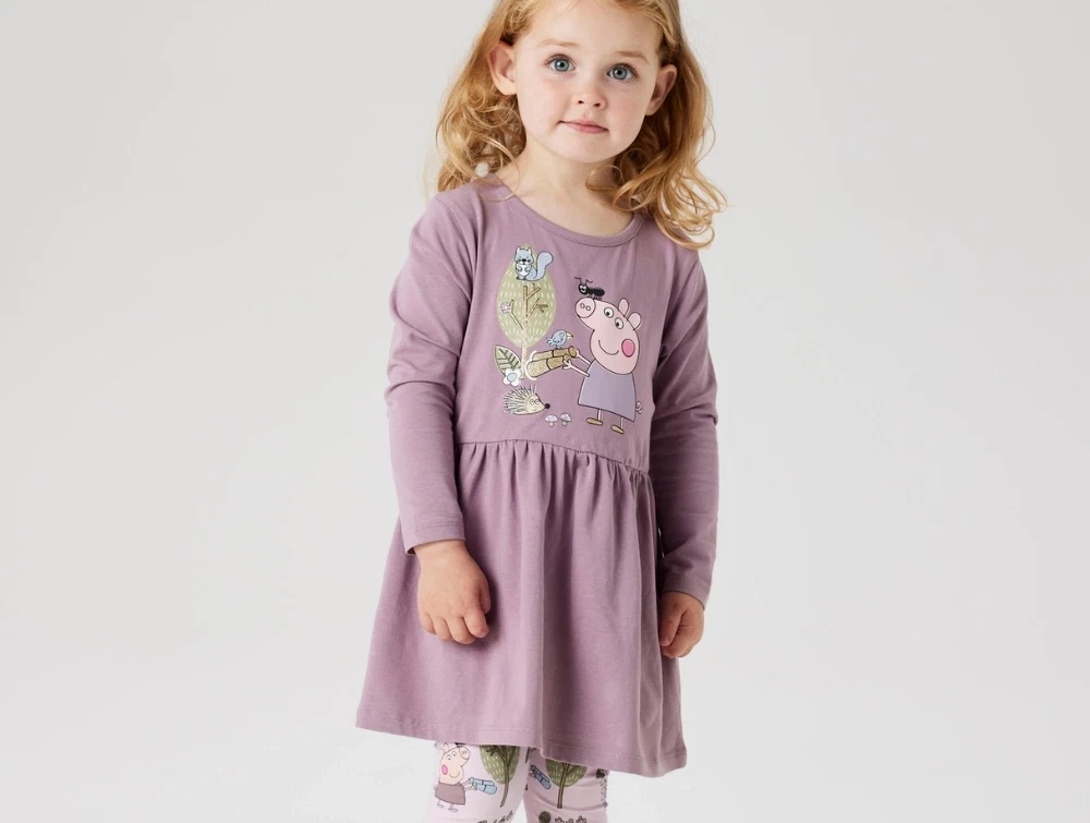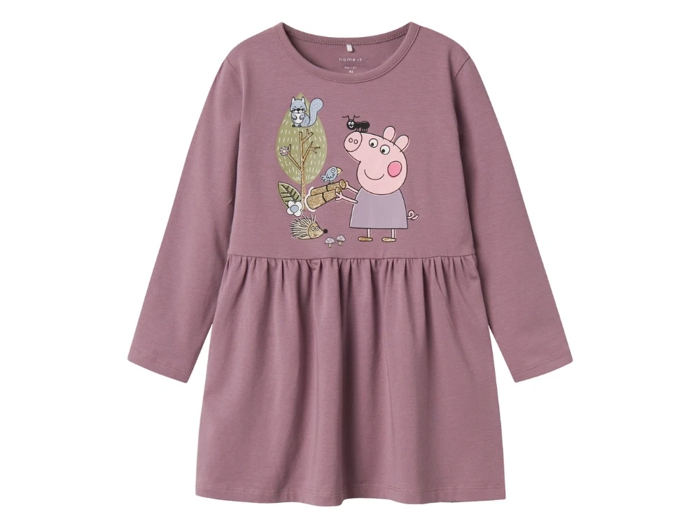Kjole i lilla nucance fra Name It med sødt Gurli Gris print og glitterdetaljer.