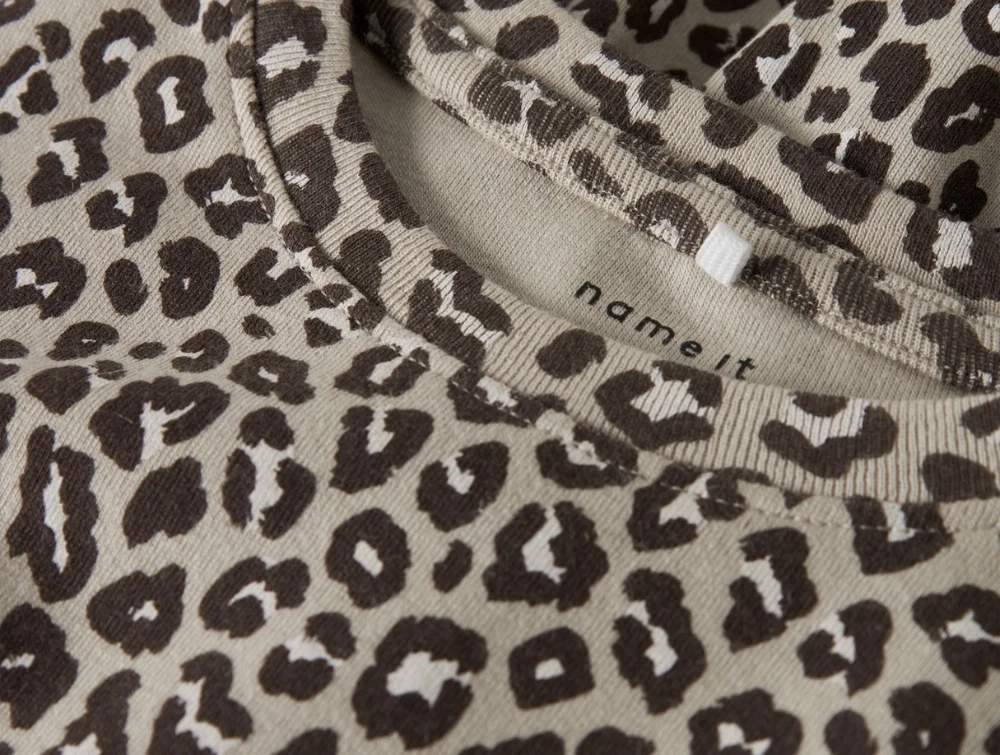 Name It kjole i beige nuance med leopardprint og lange ærmerName It kjole i beige nuance med leopardprint og lange ærmer