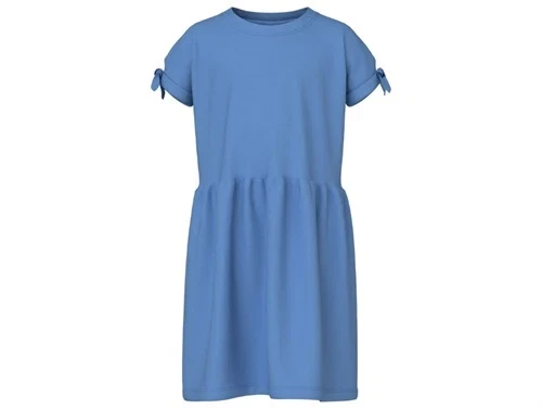 Blød og behagelig kjole fra Name It i en smuk nuance af provence. Kjolen er lavet af 100% bomuldsjersey, som er let, strækbart og føles blødt mod huden.