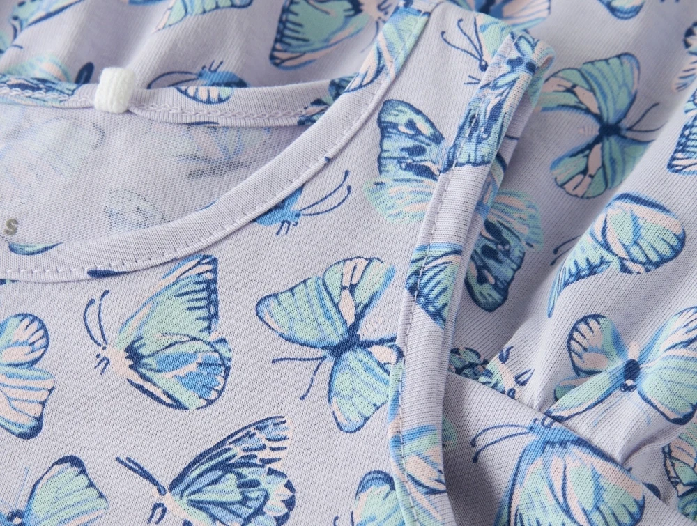 ærmeløs kjole med sommerfugleprint fra Name It i lilla nuanceærmeløs kjole med sommerfugleprint fra Name It i lilla nuance nærbillede