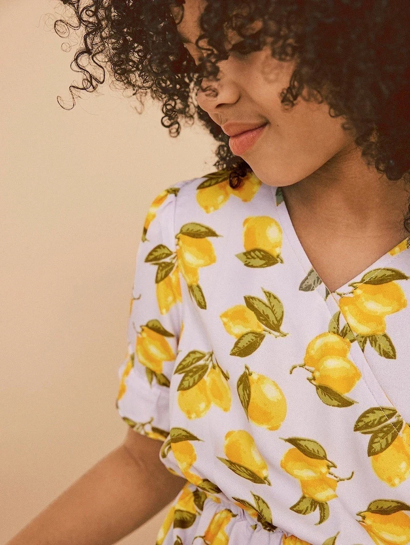 Sommerkjole med print af citroner i farven purple heather fra Name It.
