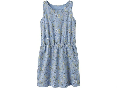 Lyseblå sommerkjole fra Name It med sødt blomsterprint over hele kjolen.