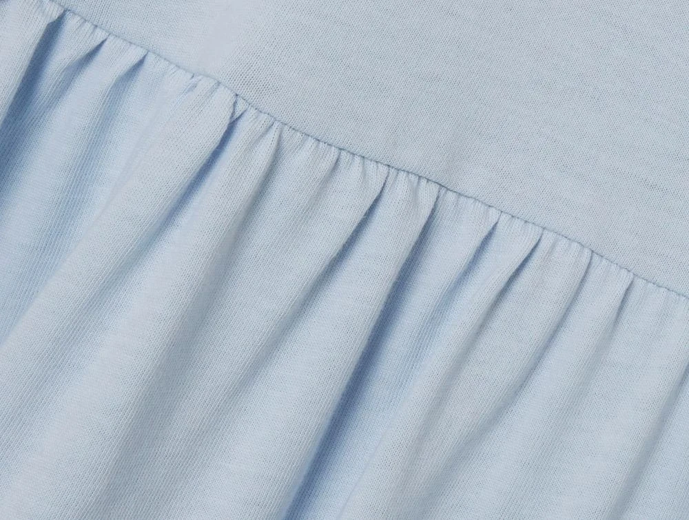 Lyseblå kjole fra Name It i blød jerseykvalitet med rund hals og pufærmer.
