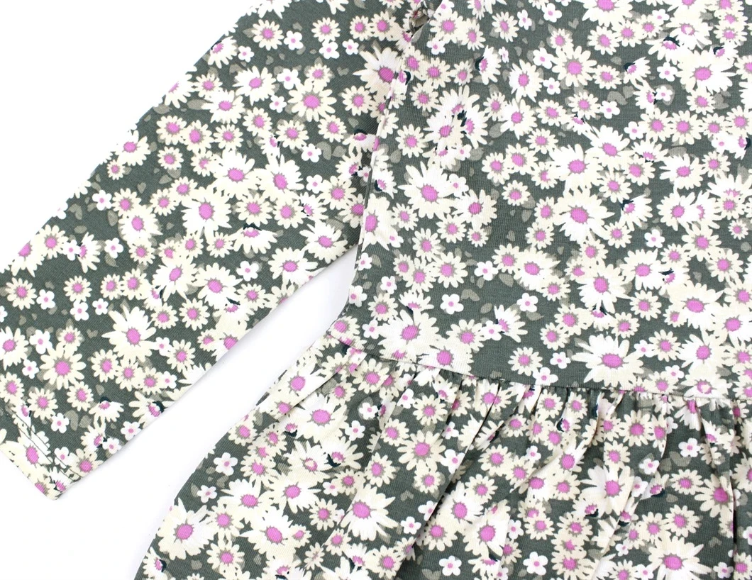 Kjole med lange ærmer i farven laurel wreath med blomsterprint fra Name It.