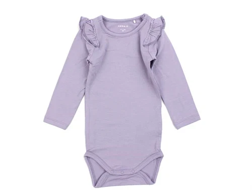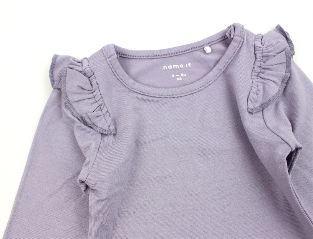 Body i farven lavender gray med flæser ved skuldrene fra Name It.