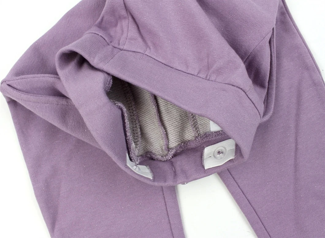 Der er justerbar elastik i linningen og glimmer på bindesnoren samt meget diskret glimmer i stoffet på bukserne.
