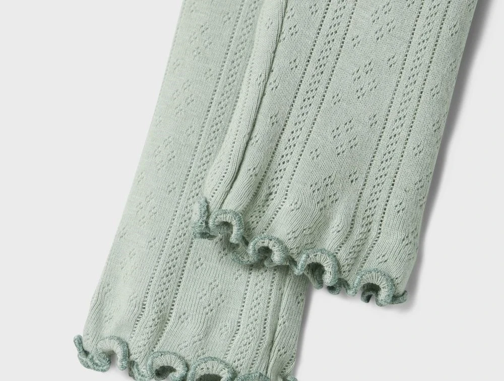 Name It leggings i aqua gray set forfraName It leggings i aqua gray set bagfraNærbillede af bølgekant og pointellemønster på aqua gray leggings fra Name It
