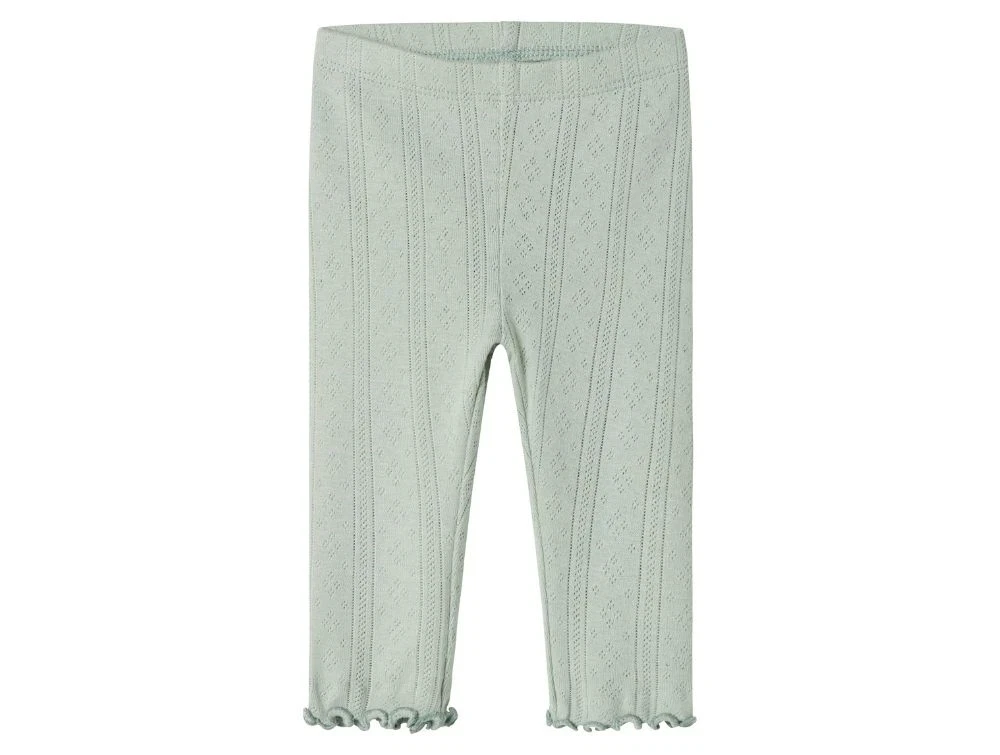 Mere information om Name It leggings aqua gray med hulmønster og bølgede kanter