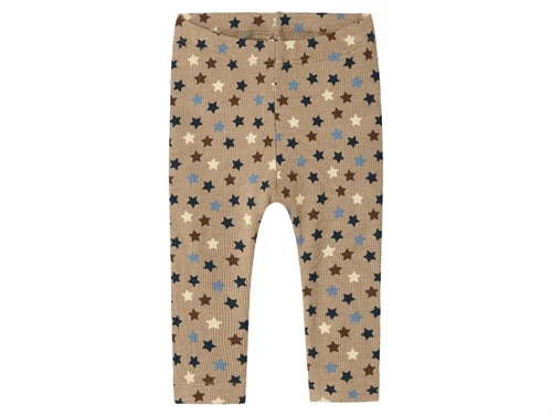 Leggings i farven lys brun (weathered teak) med print af stjerner fra Name It.