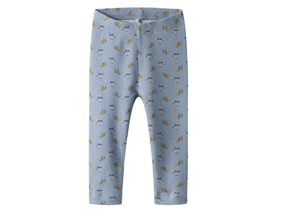 Leggings i støvet blå nuance fra Name It med små fly printet over hele stoffet. Den bløde jersey med stræk giver god bevægelsesfrihed og en behagelig pasform til baby.