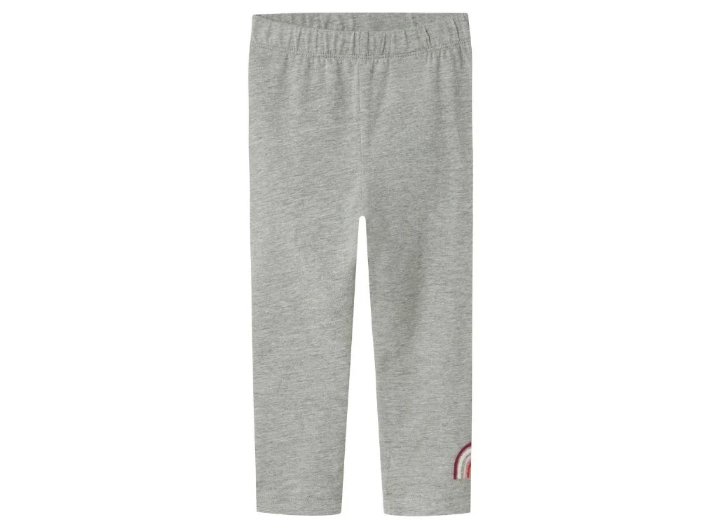 Leggings i grå (grey melange) fra Name It med broderet regnbue ved anklen.