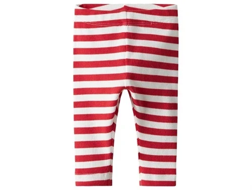 Leggings i ribkvalitet i farven hvid (bright white) med røde (chinese red) striber fra Name It.