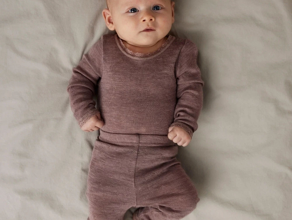 Name It leggings i antler støvet violet nuance i merinould med hulmønster set forfraName It leggings i antler støvet violet nuance i merinould på babyName It leggings i antler støvet violet nuance i merinould detalje af blondekantName It leggings i antler støvet violet nuance i merinould set bagfra