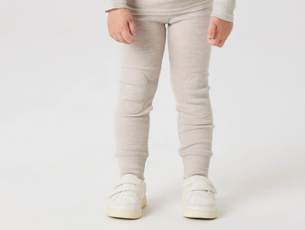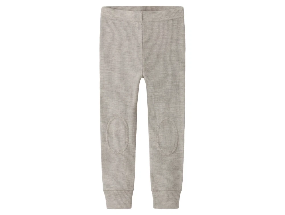 Name It leggings i lys grå nuance med ribmønster og knæforstærkning i merinould
