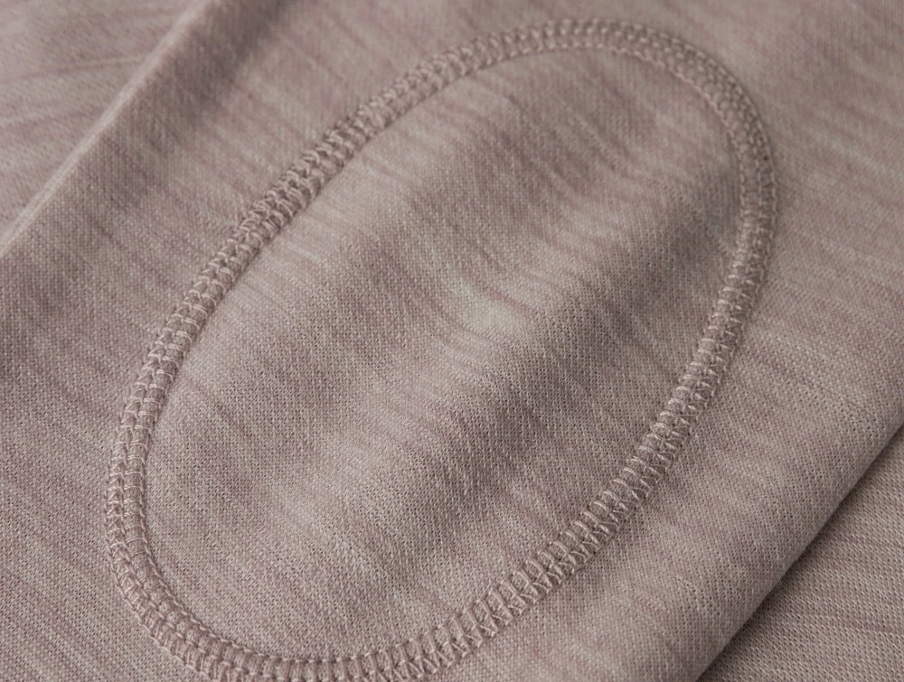Modellen har elastik i taljen med lille sløjfe, knæforstærkninger og ribkant forneden.