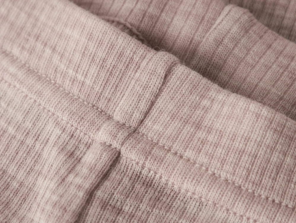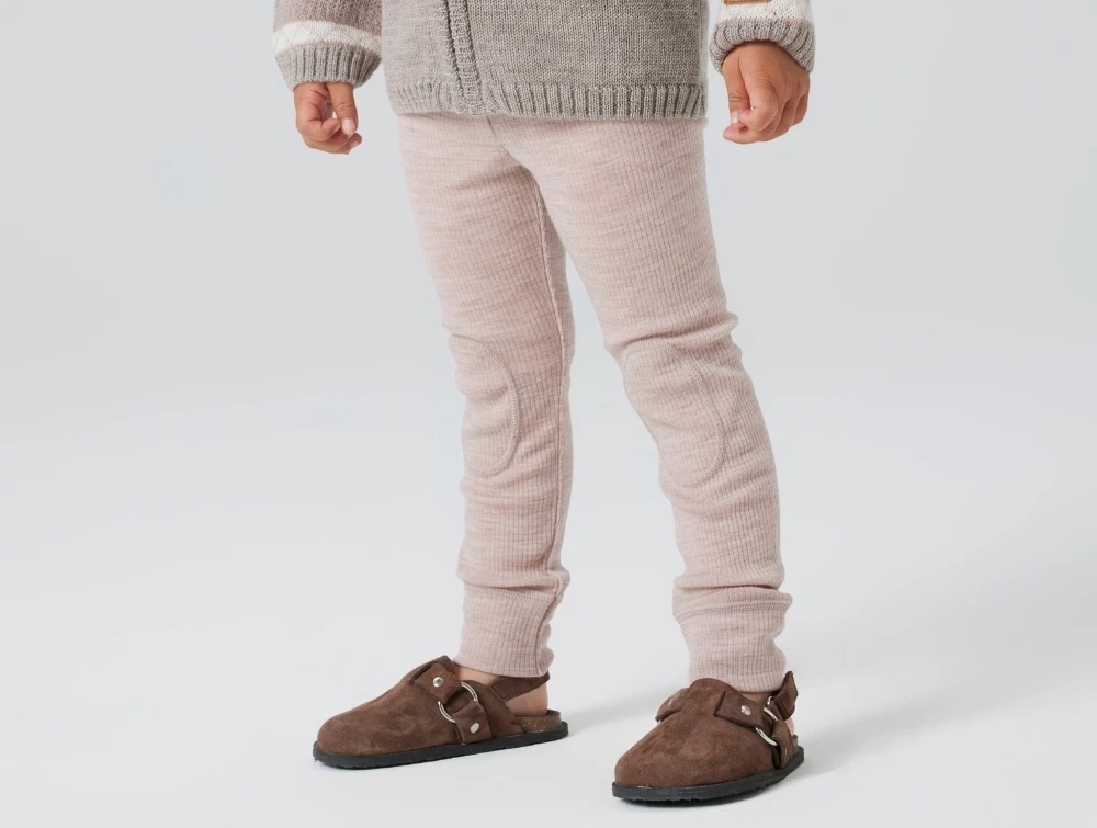Leggings i støvet rosa nuance (shadow gray) fra Name It i merinould med ribmønster og knæforstærkning.