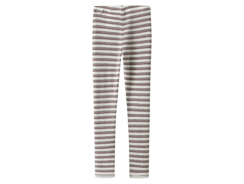 Leggings i støvet violet nuance (antler) med råhvide (off-white) striber fra Name It i blød merinould.