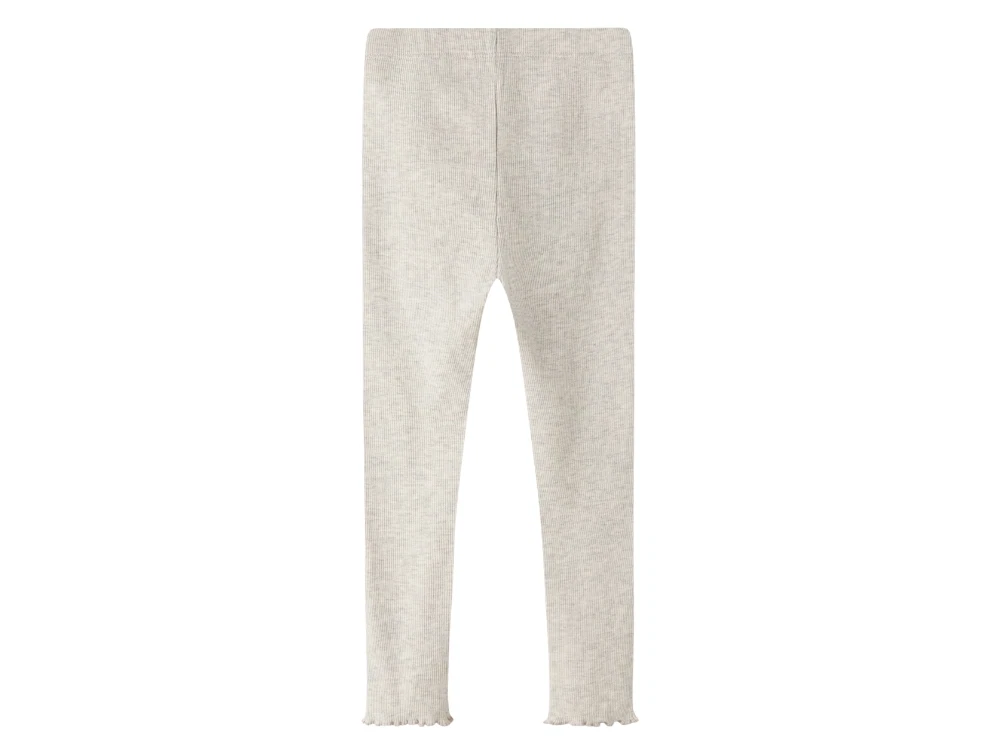 Leggings i råhvid nuance (Peyote Melange) fra Name It med små blomsterbroderier ved benene.