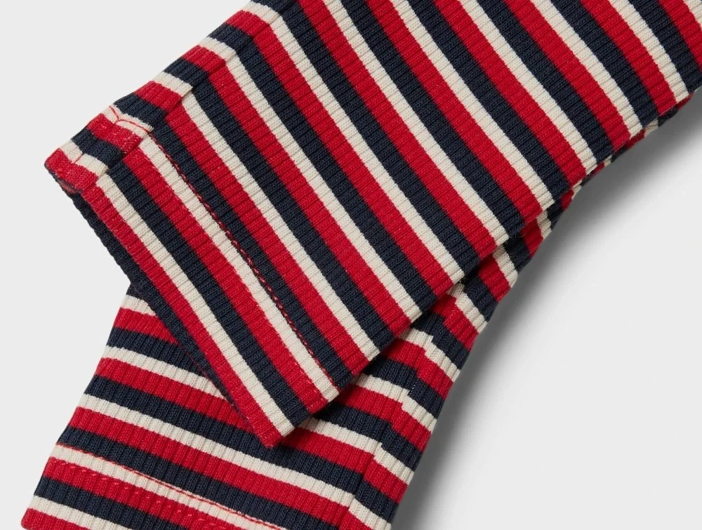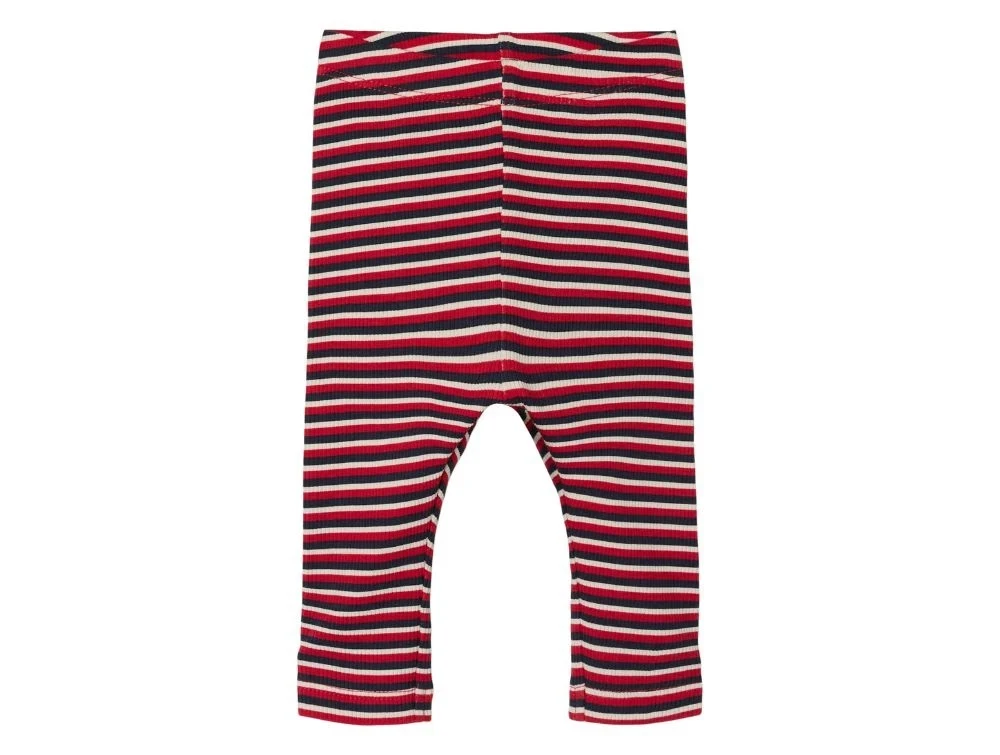 Søde og strækbare leggings fra Name It med et klassisk stribemønster i røde og blå nuancer. De er lavet af 95% økologisk bomuld og 5% elastan, hvilket giver en blød og fleksibel pasform.