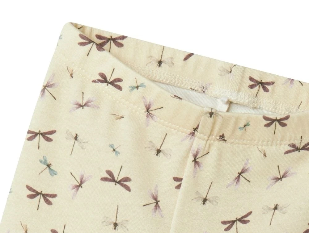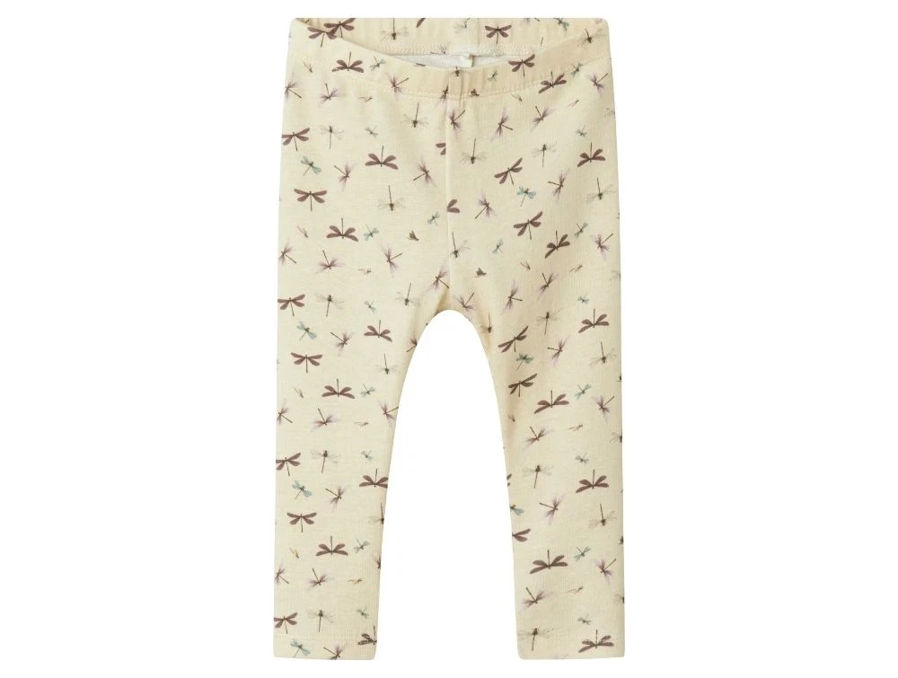 Leggings i lys beige nuance (summer sand) fra Name It med print af små guldsmede over hele stoffet.