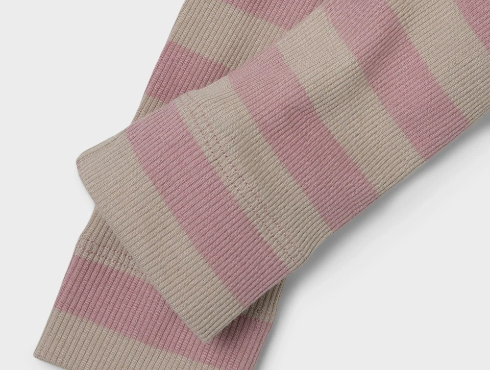 frontbillede af leggings med rosa og beige striber fra Name Itnærbillede af ribstruktur på leggings med rosa og beige striber fra Name It