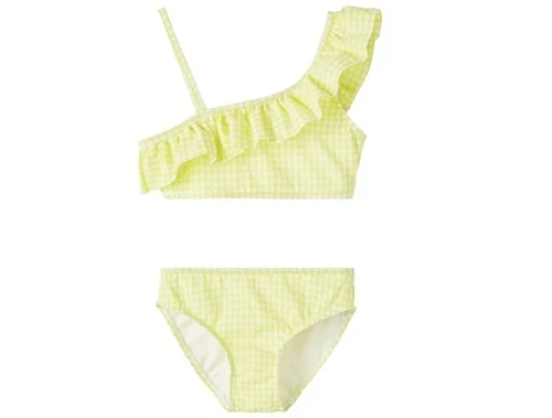 Bikini i farven lemon tonic i tern og one-shoulder med flæse fra Name It.