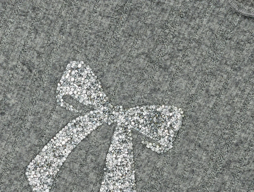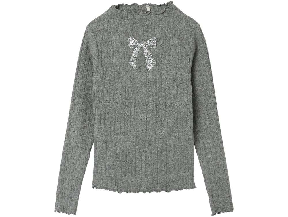 Langærmet bluse i farven light grey melange med glittersløjfe fra Name It.