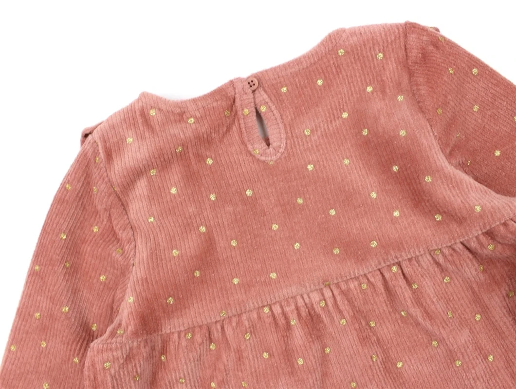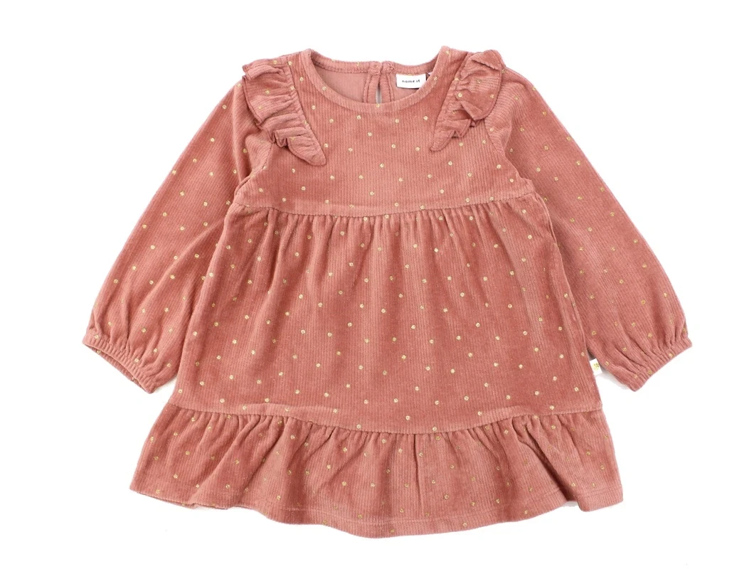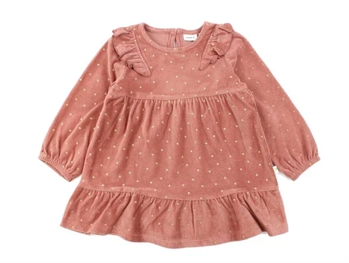 Kjole i velvet ribkvalitet i farven light mahogany med glitterprikker fra Name It.