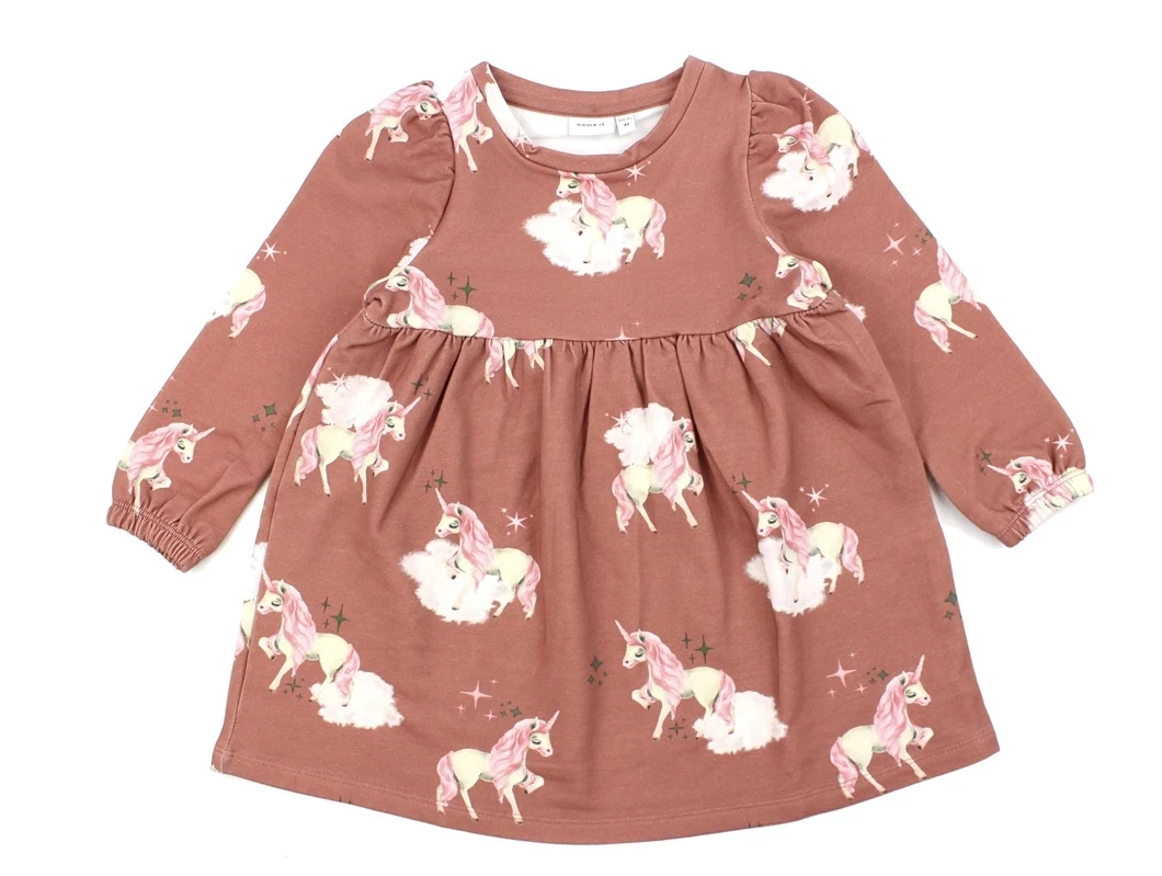 Sweatkjole i farven light mahogany med enhjørningprint fra Name It.