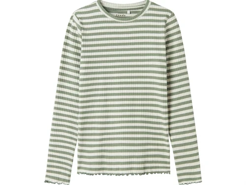 Stribet langærmet top i farverne jet stream og lily pad fra Name It.