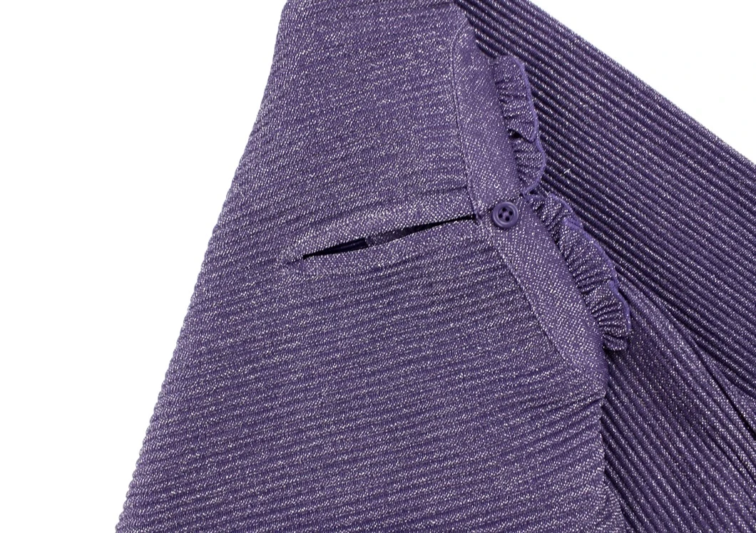 Denne glittertop er designet med en høj hals, der tilføjer et elegant touch, og flæser, der giver et legende element til toppens udseende. Med knaphullukningen er det nemt at tage den på og af.